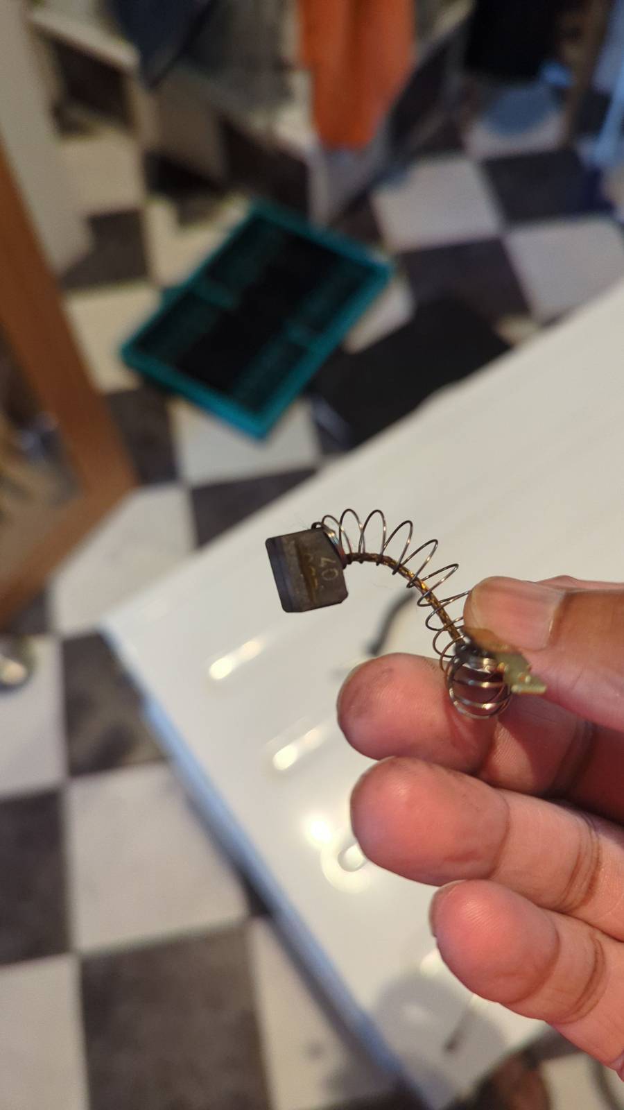 Ohne die ganze Maschine zerlegen zu müssen, konnte ich den Motor von unten ausbauen. Die verschlissenen Kohlebürsten ersetzte ich durch günstige Nachbauten von eBay – und die Maschine lief wieder.