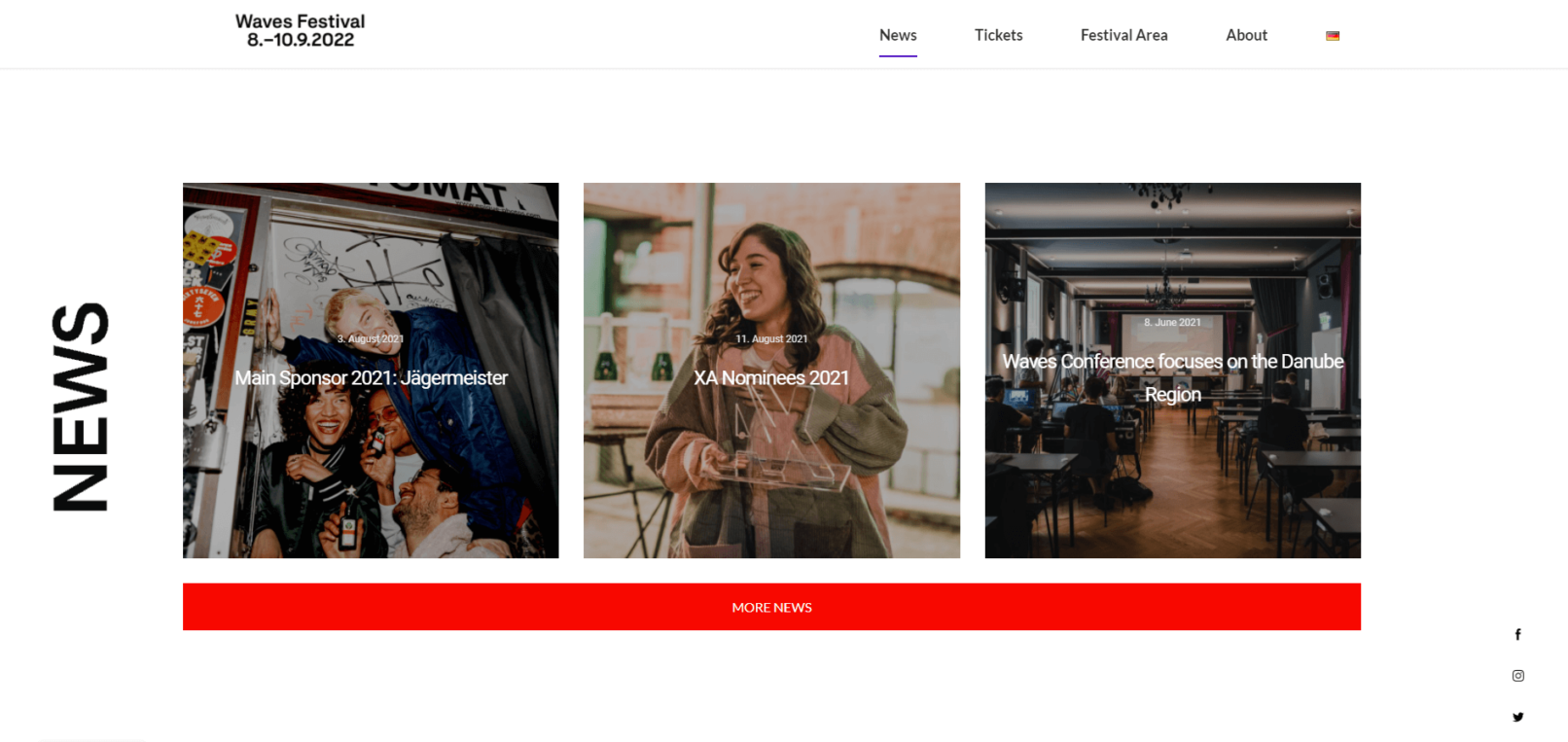 Seit 2015 war ich für das Waves Festival überwiegend in der Produktion tätig. Während der Corona-Pandemie entfiel meine Aufgabe als Booking-Karenzvertretung für FM4 Live Shows, sodass ich mich auf den Relaunch der Festival-Website konzentrierte.
